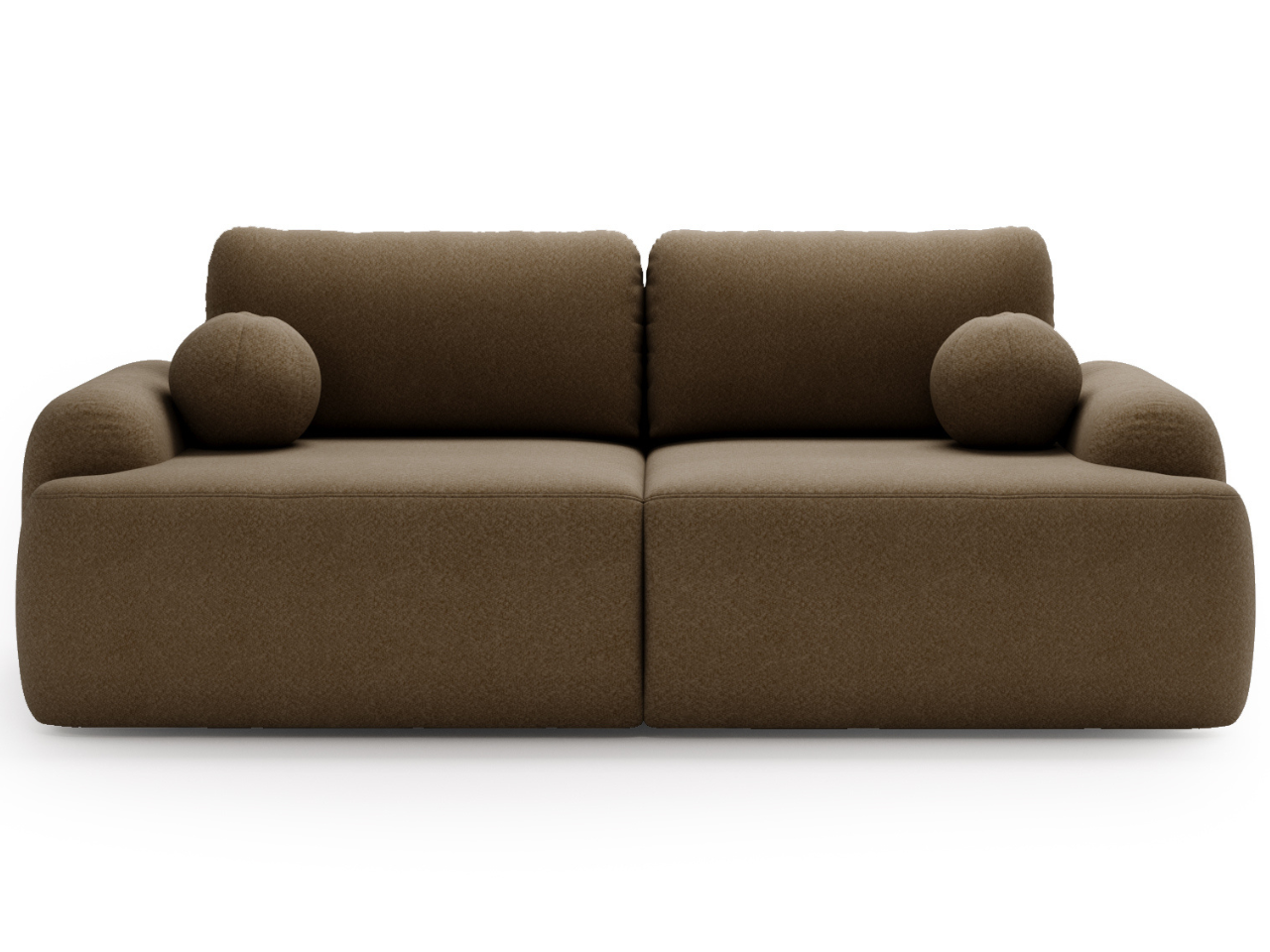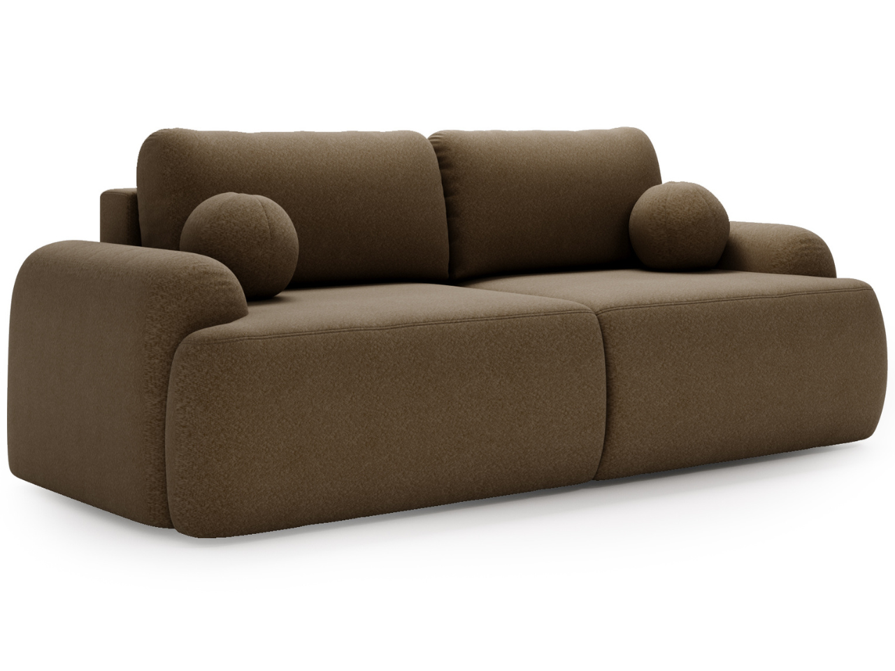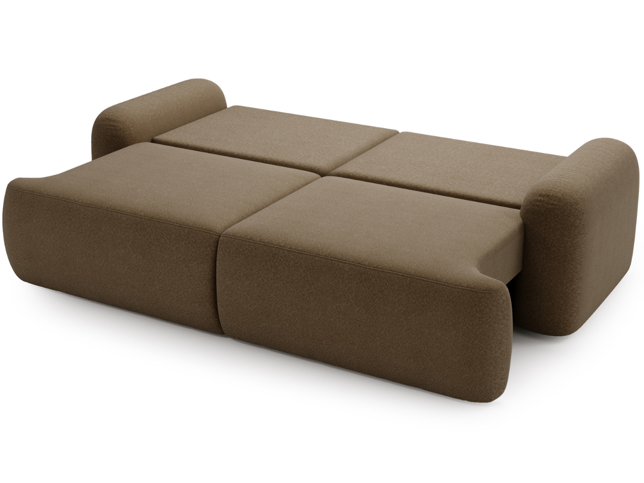 Kanapa z funkcją spania Savo tkanina boucle brązowa zaokrąglone kształty