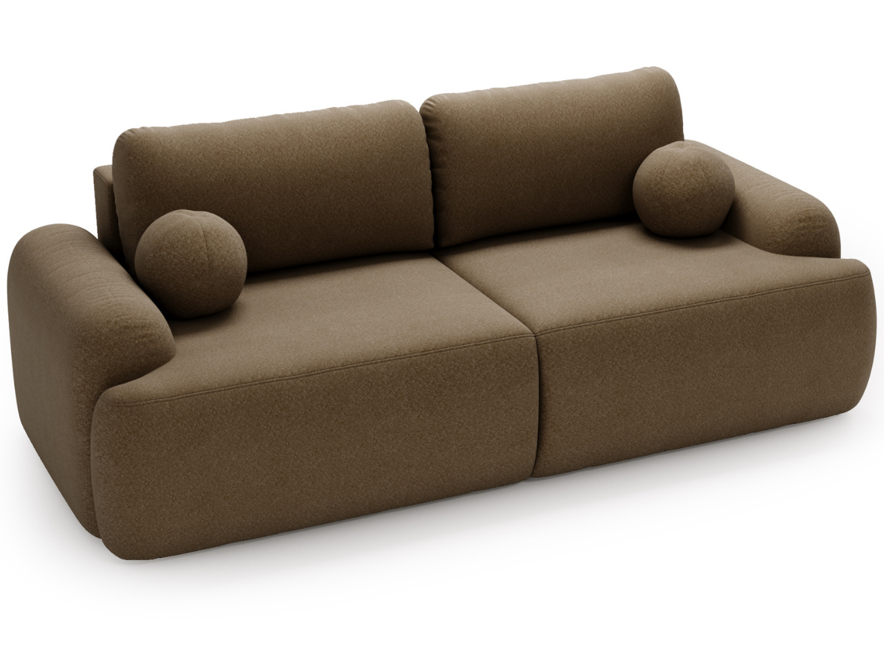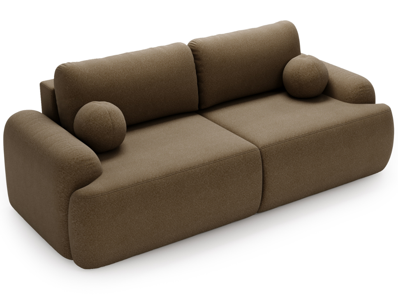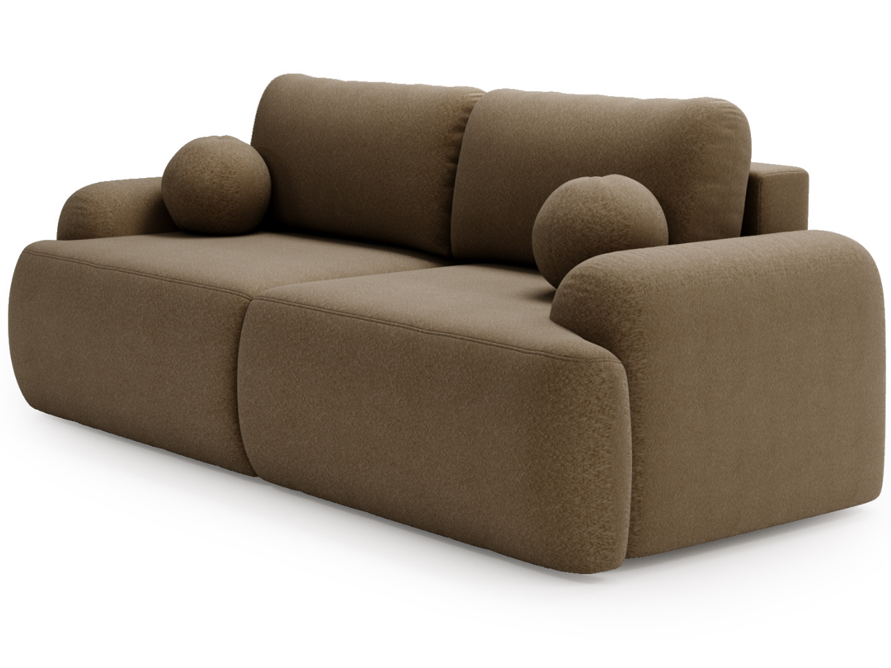 Kanapa z funkcją spania Savo tkanina boucle brązowa zaokrąglone kształty