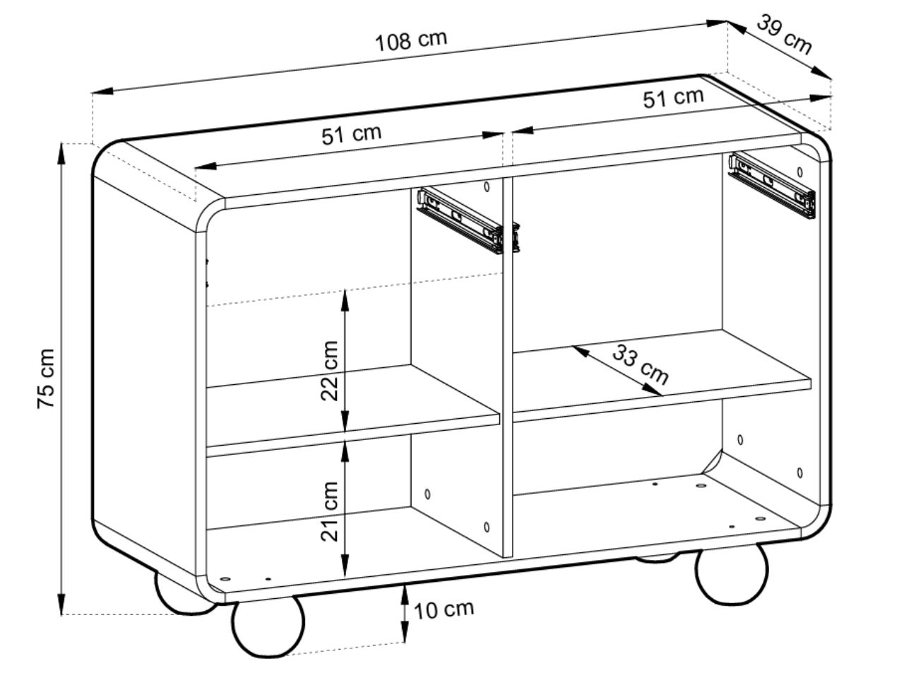 Wyposażona w dwie pojemne szuflady oraz dwa otwierane fronty z przestronnymi półkami, pozwala na łatwe i wygodne przechowywanie ubrań, zabawek, akcesoriów czy innych niezbędnych drobiazgów. Dzięki temu utrzymanie porządku w pokoju stanie się znacznie prostsze.