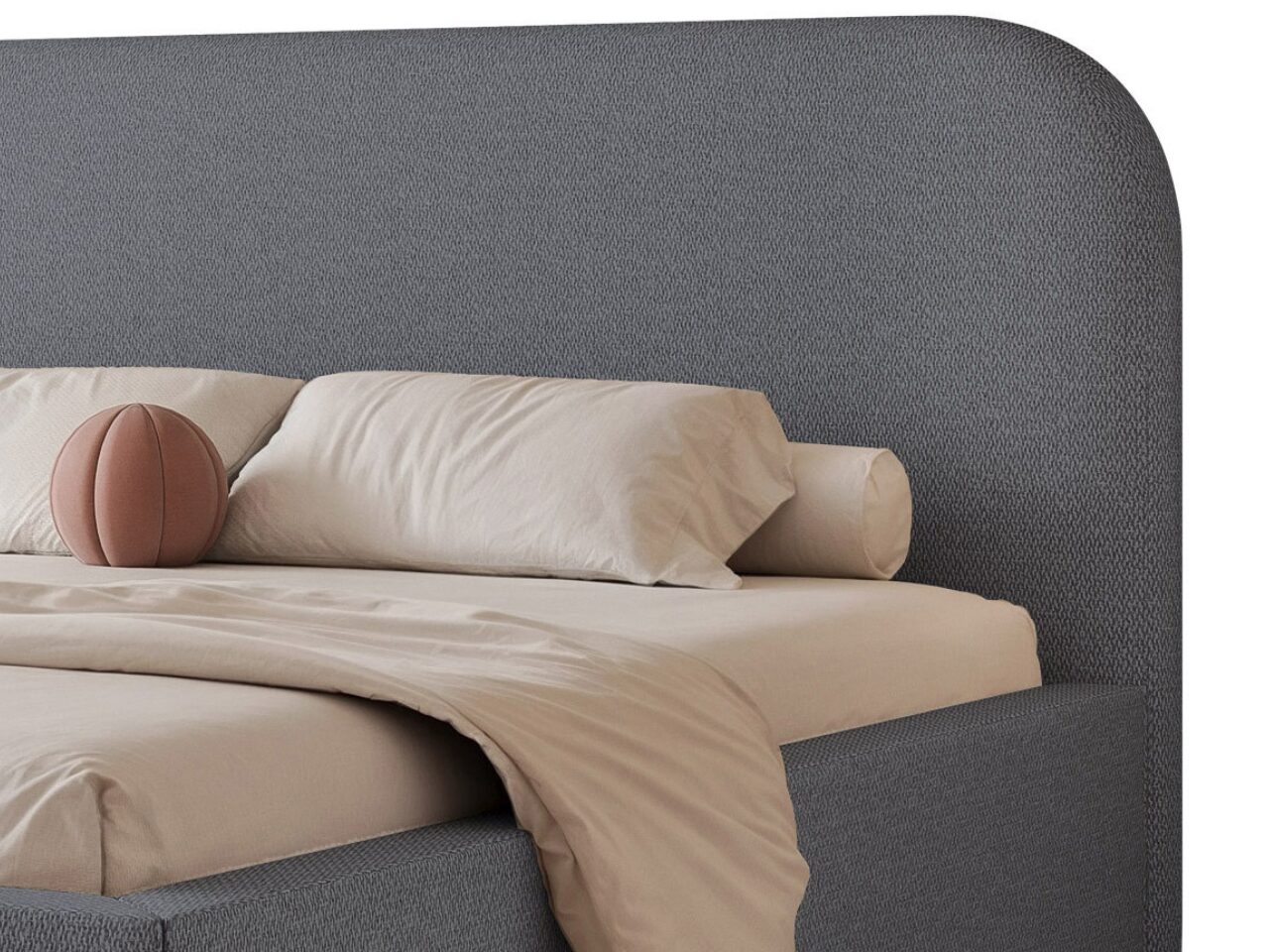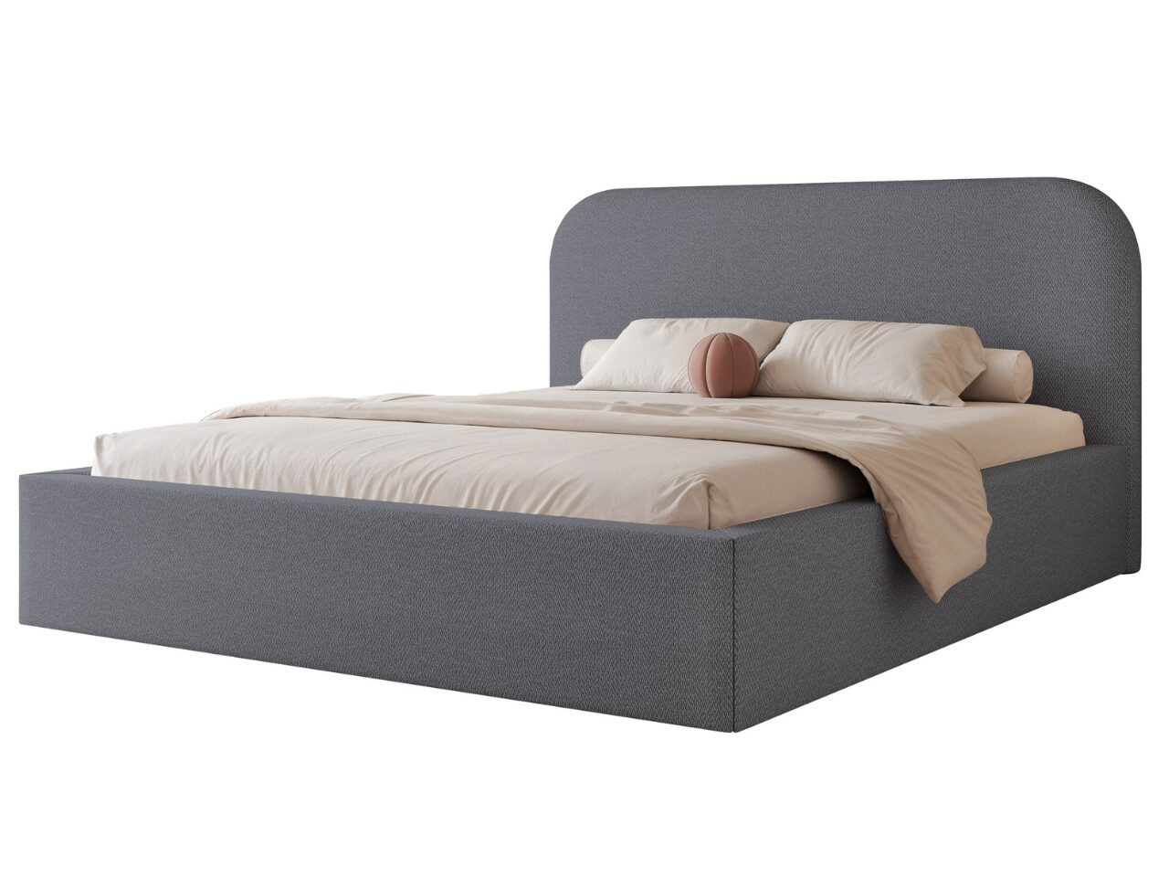 To łóżko tapicerowane z wysokim zagłówkiem wyróżnia się subtelną, zaokrągloną formą, która nadaje wnętrzu lekkości i nowoczesnego charakteru. Prosta, minimalistyczna linia sprawia, że świetnie komponuje się z aranżacjami w stylu nowoczesnym, skandynawskim i eleganckim. Miękkie, tapicerowane wezgłowie zapewnia wygodne oparcie podczas czytania lub oglądania telewizji.