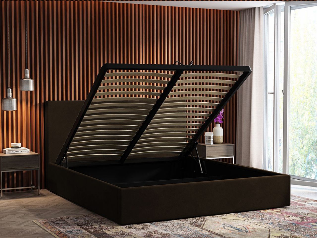 Podwójne łóżko zostało obite tkanina ROYAL VELVET posiada pluszową powierzchnię, która nadaje elegancki, wyrafinowany wygląd. Dzięki subtelnemu połyskowi, tkanina odbija światło, tworząc efekt głębi i wrażenie ciepła w każdym pomieszczeniu. Materiał jest odporny na ścieranie i łatwy w utrzymaniu czystości.