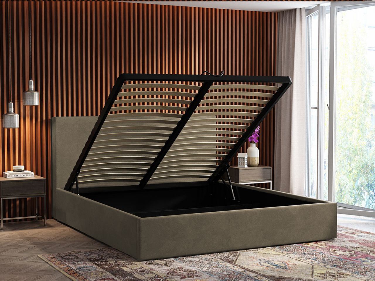 Solidny stelaż metalowy ta wytrzymała konstrukcja zapewnia stabilność oraz długą żywotność łóżka. Metalowy stelaż wspiera materac, co przekłada się na lepszy komfort snu. Dzięki automatom gazowym stelaż otwiera się płynnie i bez przeszkód.
