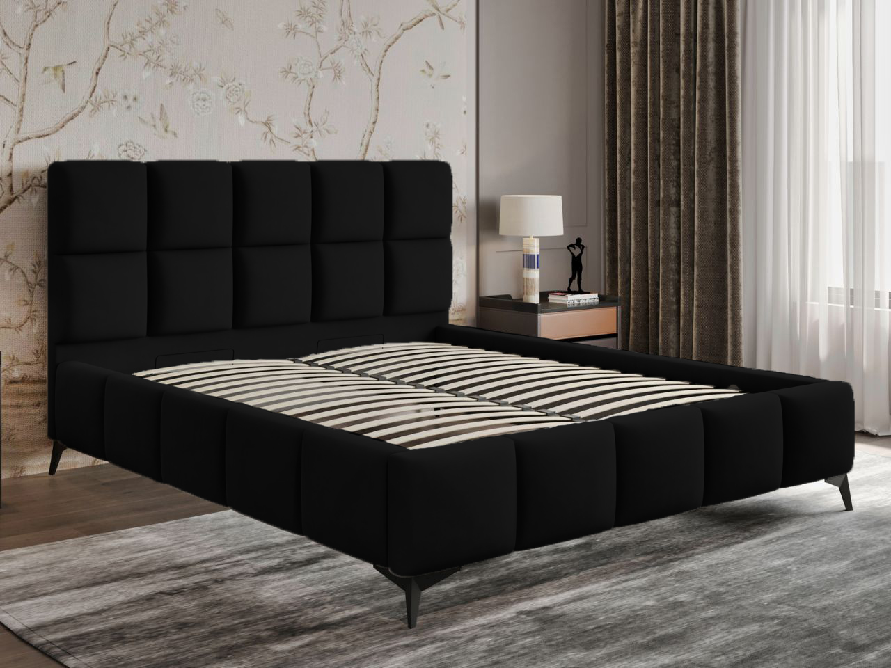 Łóżko tapicerowane z pojemnikiem 180×200 Cozy czarne