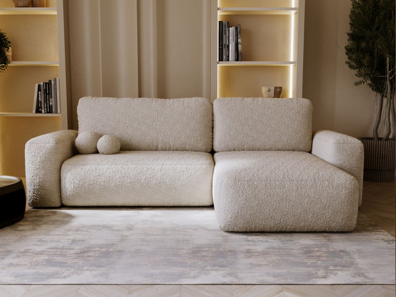 Narożnik Como L łączy w sobie elegancki wygląd i codzienną wygodę, dzięki czemu świetnie odnajdzie się w nowoczesnych aranżacjach. Delikatna linia bryły nadaje mu wyjątkowego charakteru, a jednocześnie sprawia, że wnętrze zyskuje ciepły i przytulny klimat. Narożnik do salonu posiada designerskie, okrągłe poduszki, które dodają całości wyjątkowego stylowego akcentu.