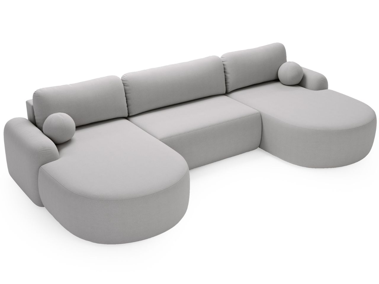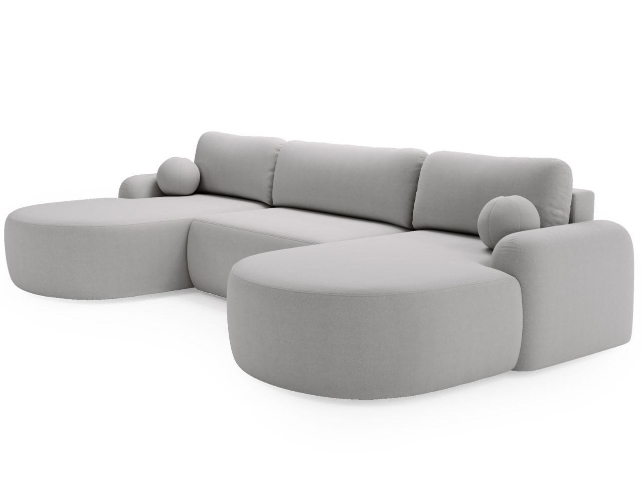 Narożnik Savo U to połączenie nowoczesnej formy i wyjątkowego komfortu, stworzone z myślą o przestronnych, stylowych wnętrzach. Charakterystyczne, owalne linie i miękkie zaokrąglenia nadają bryle lekkości oraz subtelnej elegancji, czyniąc z tego modelu prawdziwą ozdobę salonu. Okrągłe, dekoracyjne poduszki dodają całości designerskiego wyrazu, a zarazem wprowadzają do wnętrza nutę przytulności i harmonii.