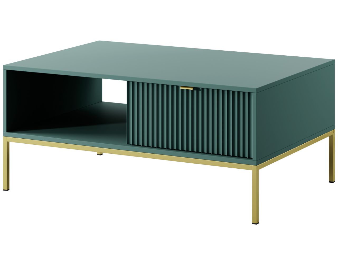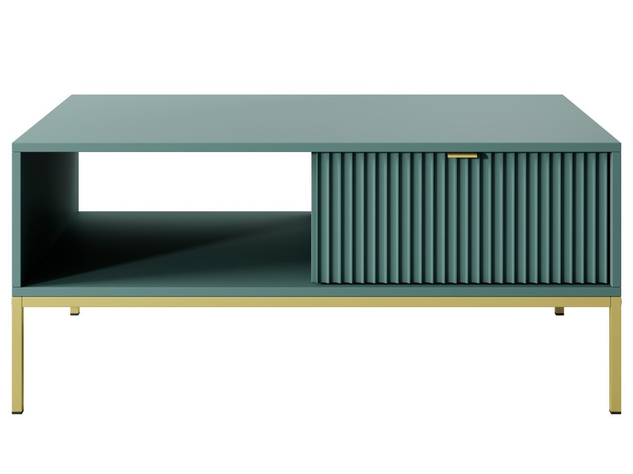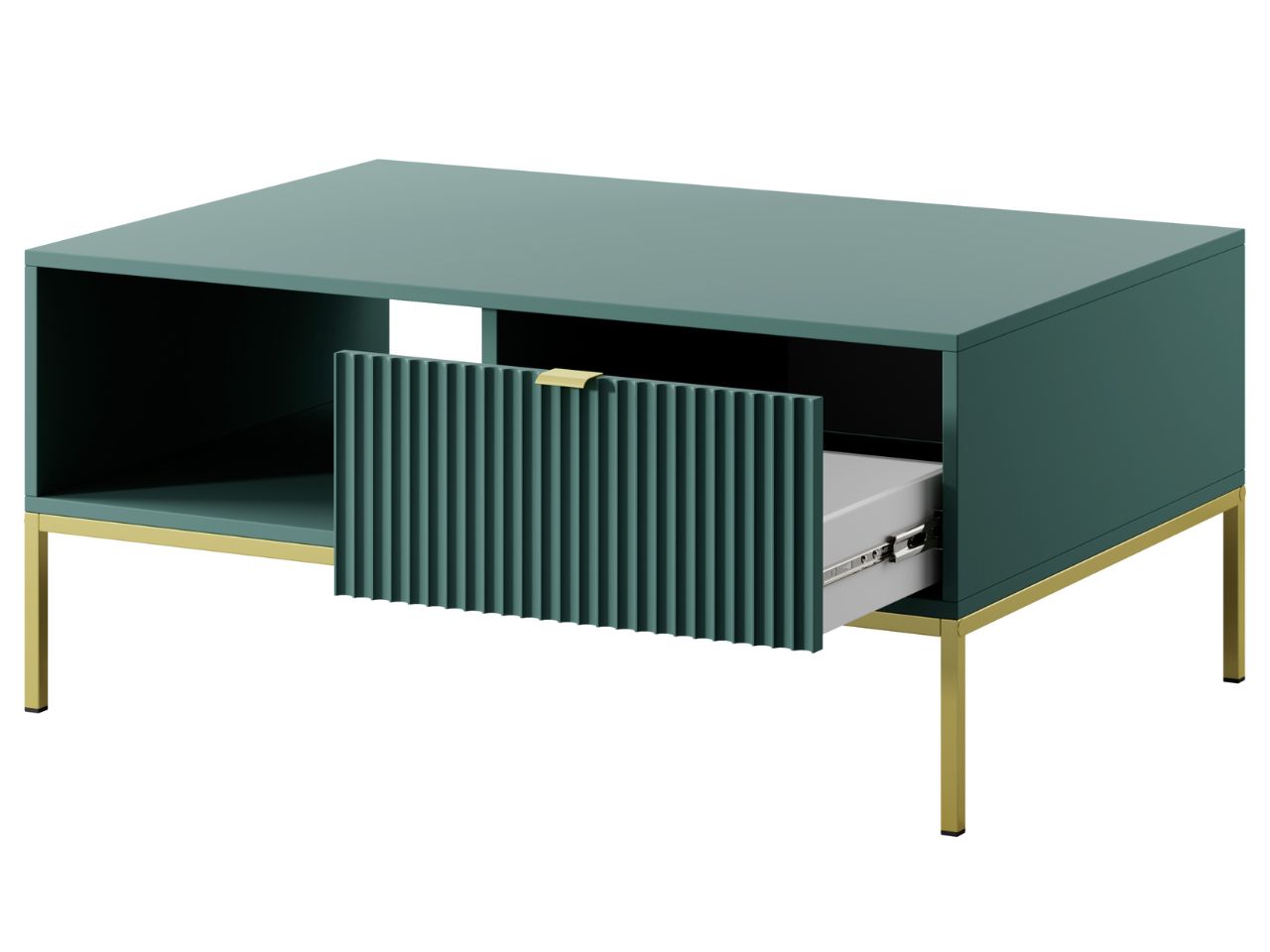 Stolik kawowy Asti z szufladą zielony na złotych nóżkach złote uchwyty