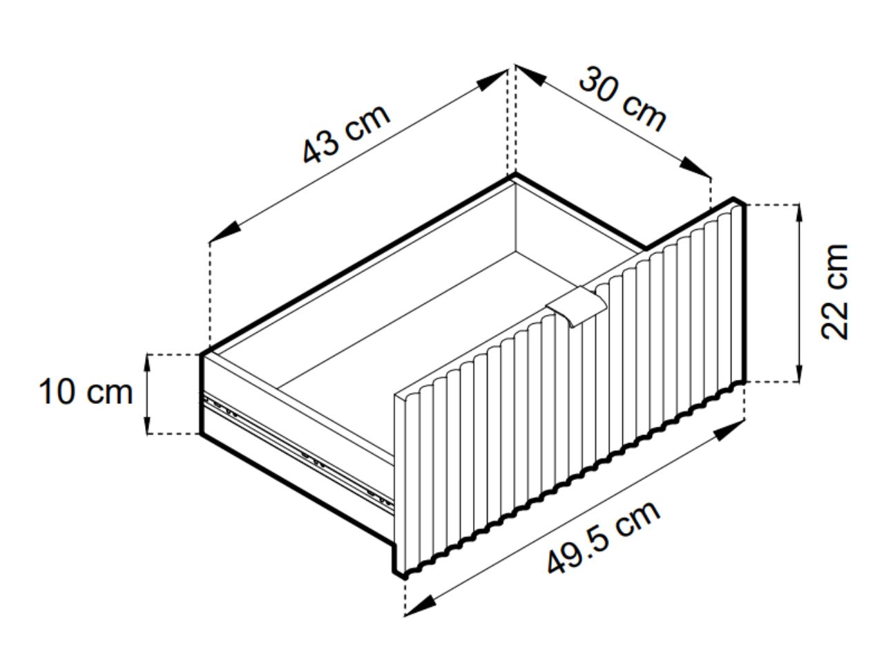 • Eleganckie ryflowane fronty, które dodają unikalnego charakteru i podkreślają nowoczesny styl mebla.