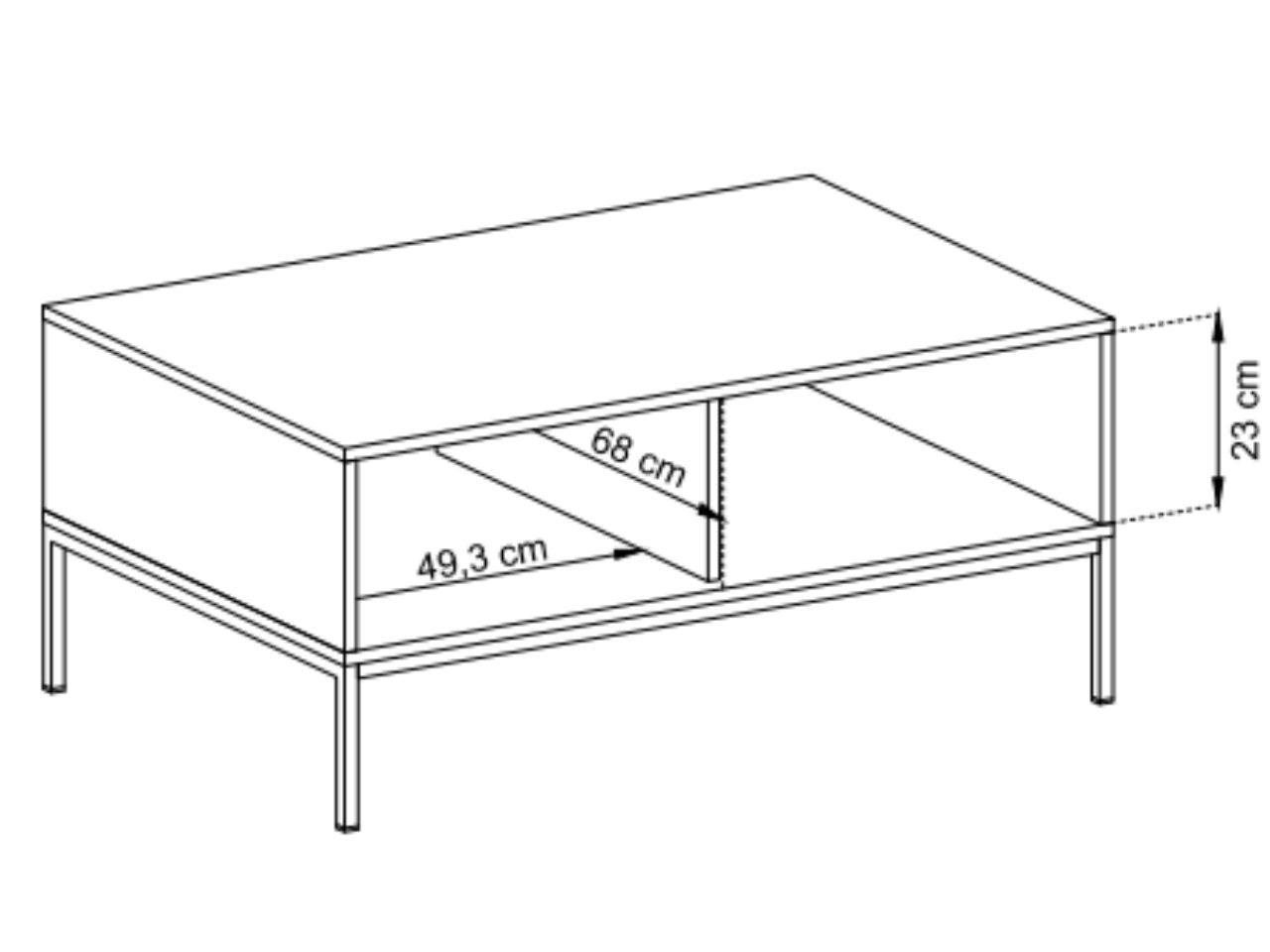 Ława do salonu Toti wyposażona jest w dwie praktyczne szuflady, które oferują miejsce do przechowywania drobnych przedmiotów, utrzymując porządek w salonie. Duży, płaski blat zapewnia przestrzeń na ekspozycję dekoracji, napojów czy przekąsek, stając się centralnym punktem spotkań towarzyskich. Połączenie funkcjonalności i estetycznego designu sprawia, że ława Toti jest nie tylko praktycznym meblem, ale również stylowym elementem dekoracyjnym.