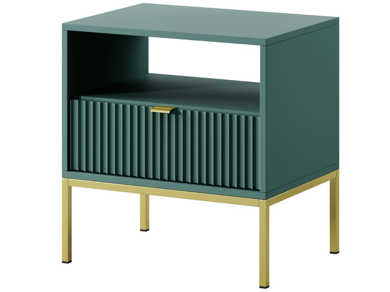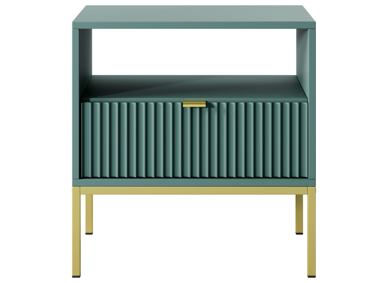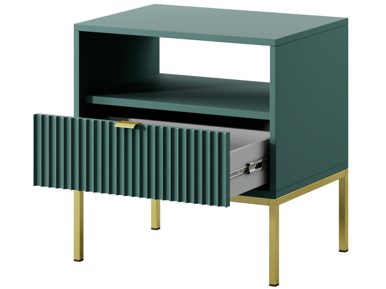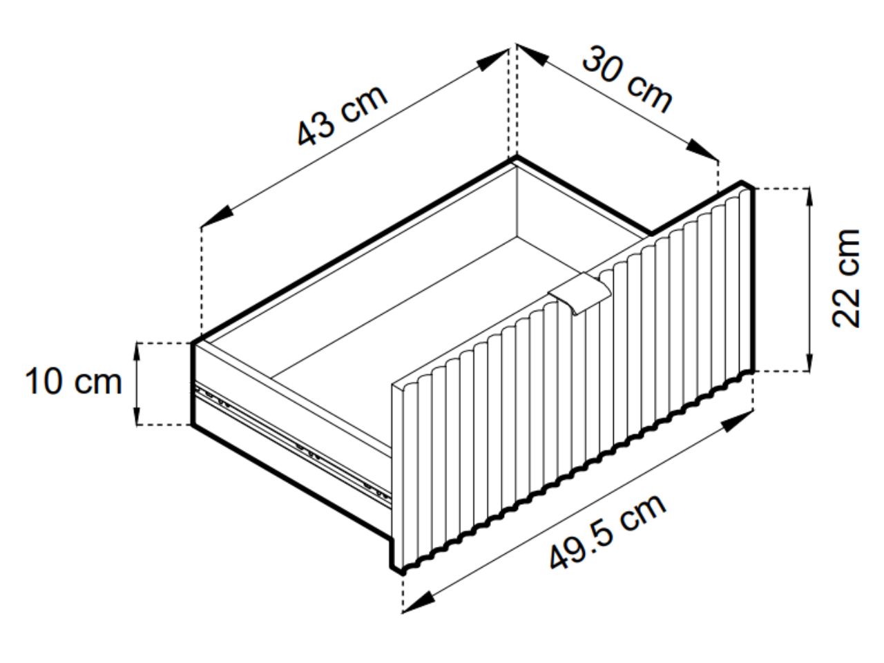Jego piękne fronty z efektem 3D dodają wnętrzu charakteru, a metalowe nogi, dostępne w dwóch kolorach – złotym i czarnym – nadają lekkości i nowoczesnego stylu.
