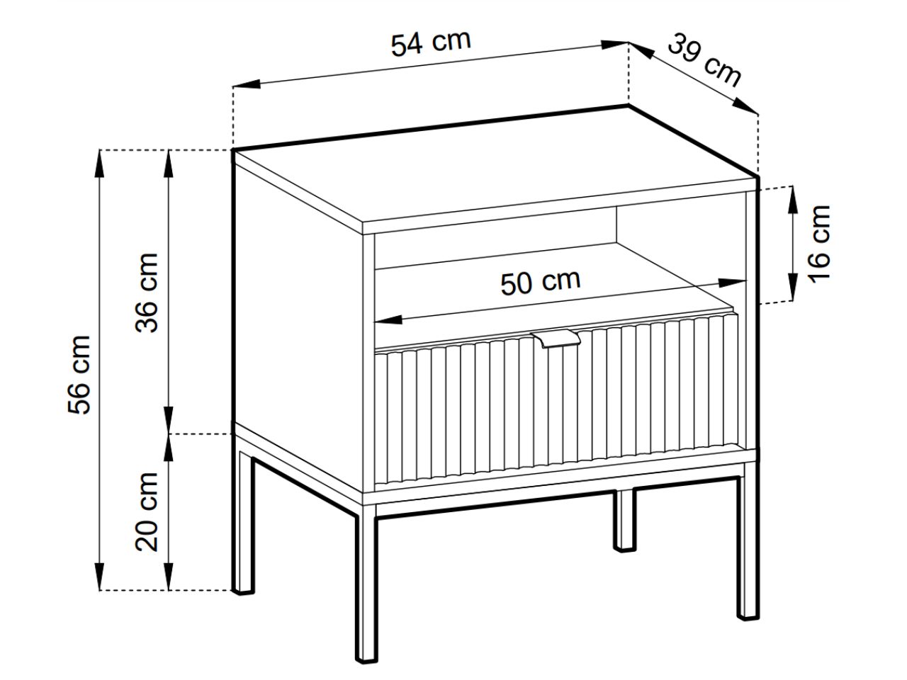 Ten stylowy mebel, wyposażony w pojemną szufladę oraz półkę, oferuje wygodne miejsce na przechowywanie najpotrzebniejszych przedmiotów, takich jak książki, ładowarka czy kosmetyki, dzięki czemu zawsze masz je pod ręką.